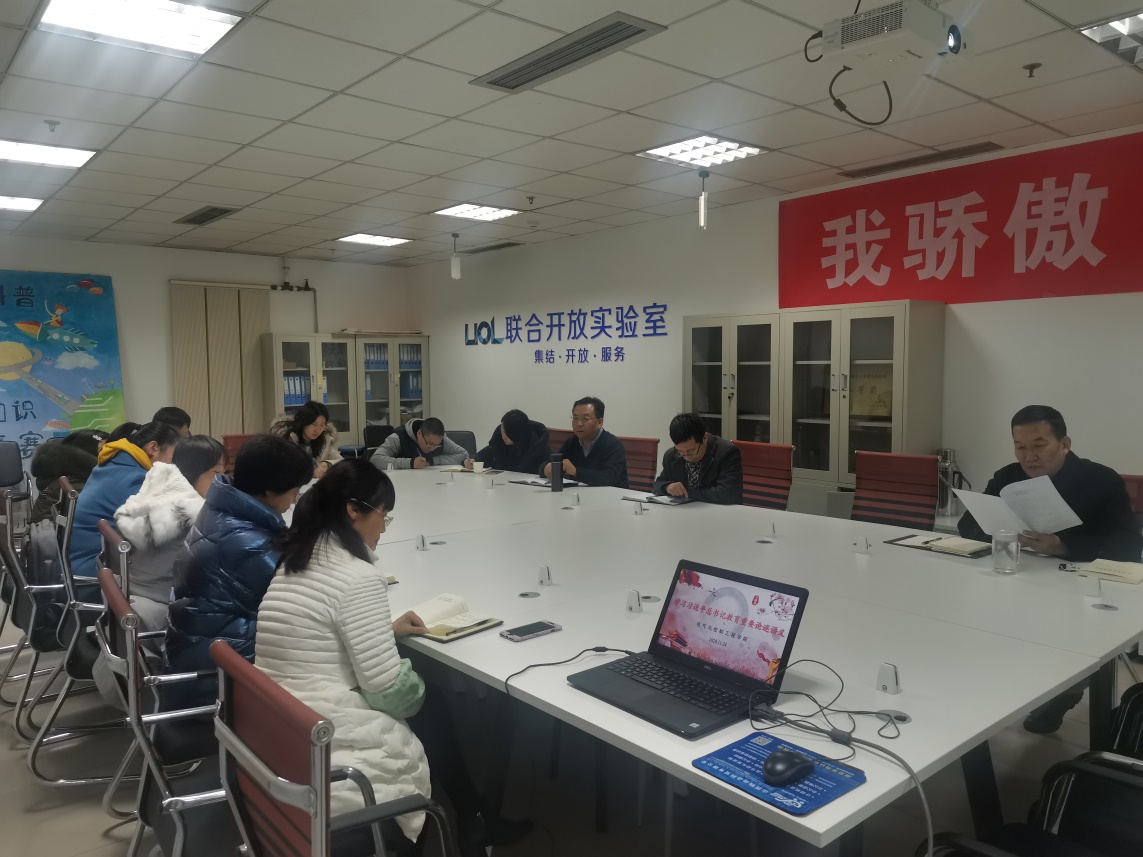 陈书记强调,教师要有正确的理想信念,要有正确的价值观,要有渊博的学识,更要有爱。学院要满腔热情关心教师,让广大教师安心从教、热心从教、舒心从教、静心从教;想师之所想、急师之所急、办师之所需、干师之所盼;让广大教师在岗位上有幸福感、在事业上有成就感、在社会上有荣誉感,让教师成为让人羡慕的职业。与会老师表示,将认真学习《习近平总书记教育重要论述讲义》并贯彻落实,争做“四有”好老师,以更加饱满的精神、更加扎实的作风、更加有力的举措,为学院、学校发展作出贡献。