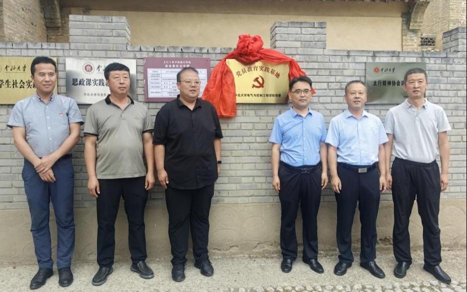 会议结束后,与会人员一同来到了太行工业学校旧址。中北大学副校长尹建平、中北大学团委书记魏翀、学院党委书记赵正杰、机电工程学院党委副书记兼副院长刘光以及蟠龙镇党委副书记、镇长崔路鹏、温庄村村支书杨树卫共同为党员教育实践基地进行揭牌。